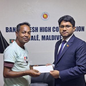 মালদ্বীপে গুরুতর অসুস্থ হয়ে পড়া বাংলাদেশি প্রবাসীকর্মী মিনার হোসেনের দেশে ফেরার জন্য বিমান টিকিট হস্তান্তর করেছেন দেশটিতে নিযুক্ত বাংলাদেশের হাইকমিশনার ড. মো. নাজমুল ইসলাম। প্রবাসী কল্যাণ ও বৈদেশিক কর্মসংস্থান মন্ত্রণালয়ের অধীন ওয়েজ আর্নার্স কল্যাণ বোর্ডের তহবিল থেকে এই বিমান টিকিট প্রদান করা হয়।