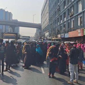 বনানীতে শ্রমিকদের সড়ক অবরোধ, পুলিশের আশ্বাসে প্রত্যাহার
